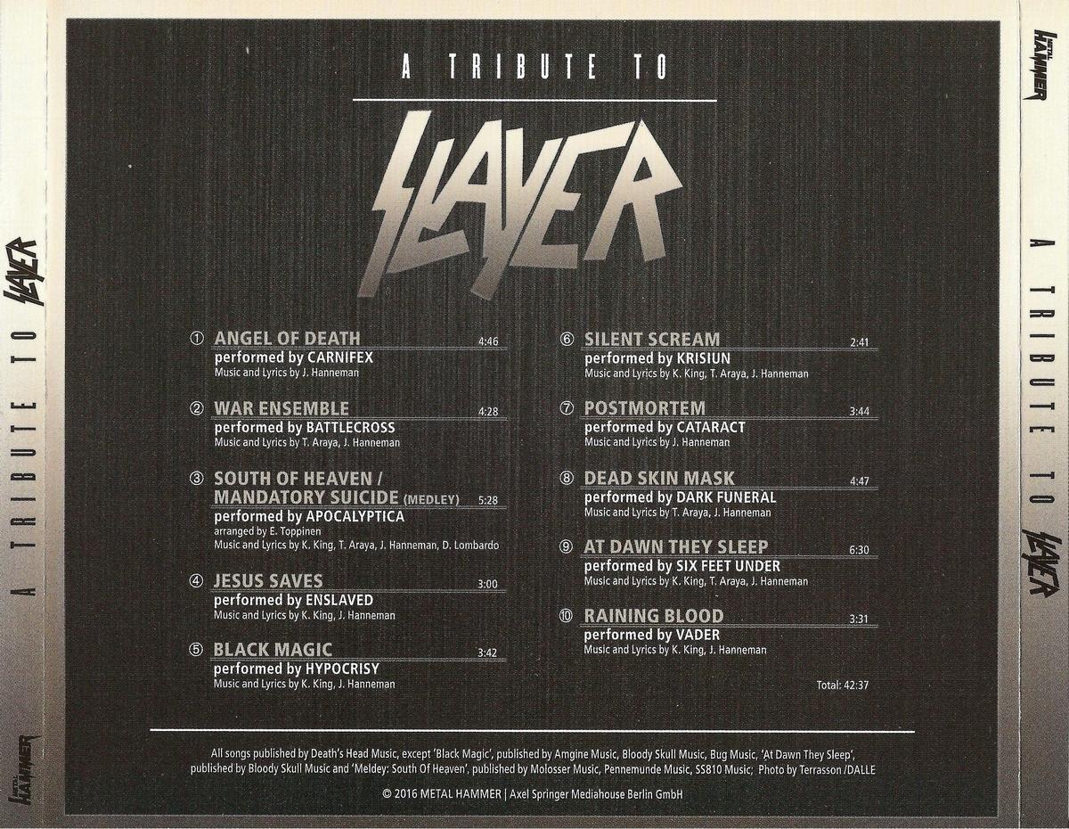 Tracks / Треклист: 01. Carnifex – Angel Of Death 02. Battlecross – War Ensemble 03. Apocalyptica – South Of Heaven/Mandatory Suicide (Medley) 04. Enslaved – Jesus Saves 05. Hypocrisy – Black Magic 06. Krisiun – Silent Scream 07. Cataract – Postmortem 08. Dark Funeral – Dead Skin Mask 09. Six Feet Under – At Dawn They Sleep 10. Vader – Raining Blood